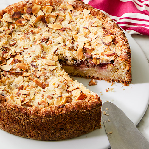 Spoon 2/3 of the batter into the prepared pan. In a bowl, combine raspberries and ¼ cup of flour and toss gently to coat. To make the cake, in a bowl, stir together the flour, granulated sugar, baking powder, baking soda and salt. Preheat oven to 350° and grease an 8 springform pan with cooking spray. In a small bowl, whisk together eggs, sour cream, melted butter and vanilla extract.