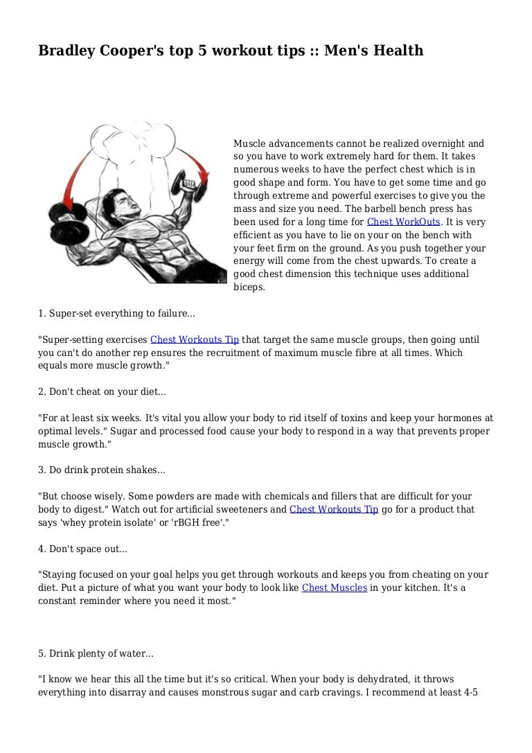 One of the most commonly prescribed workout tips for men is to drink a protein shake before you exercise. Start with 5 to 10 minutes of light cardio 1: See how to fit walking, strength training, and home exercise into busy days for a fast fat burn Static stretches alone won't help reduce your risk of injury. This isometric element makes a big difference, explains james.
